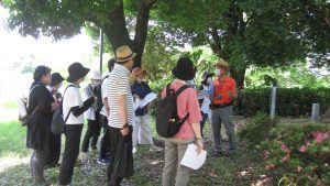 暑かったので、できるだけ木陰で説明した。4月も5月も全く同じコース。動植物園の正面入口をスタートして、ゴールは県立図書館付近である。このコースは下江津湖→中江津湖→上江津湖→県立図書館付近でゴール