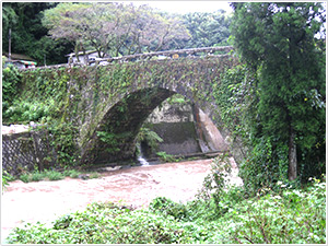 熊本県は石橋の宝庫ですが、現存する石橋のなかでは県内で2番目に古い、「県の重要文化財」の石橋です。架橋は1808年で肥後と日向を結ぶ、日向往還にかかるもので、200年以上も前の橋が往時の姿をとどめ、今も小学校の通学路として利用されています。